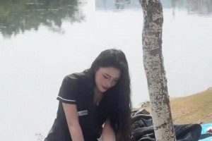 情侣旅游打卡景点,工作人员熟练地帮他们拍照!!