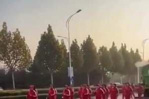“暴走团”在大马路上占道行走,下一秒被洒水车“精准打击”!